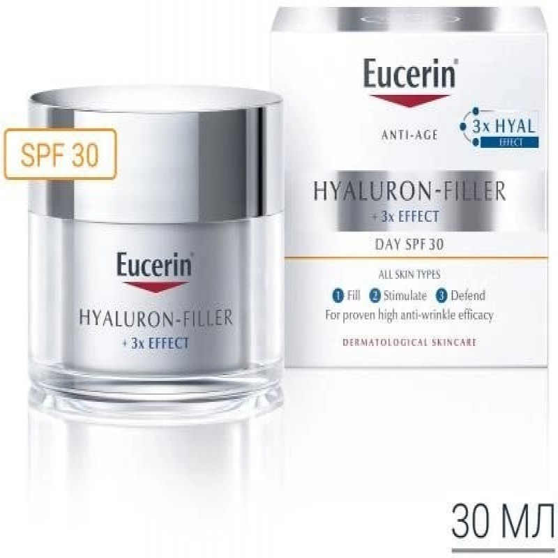 Денний крем проти зморшок Eucerin Hyaluron-Filler SPF 30 для всіх типів шкіри 50 мл (4005800198687) 999.0 ₴ |